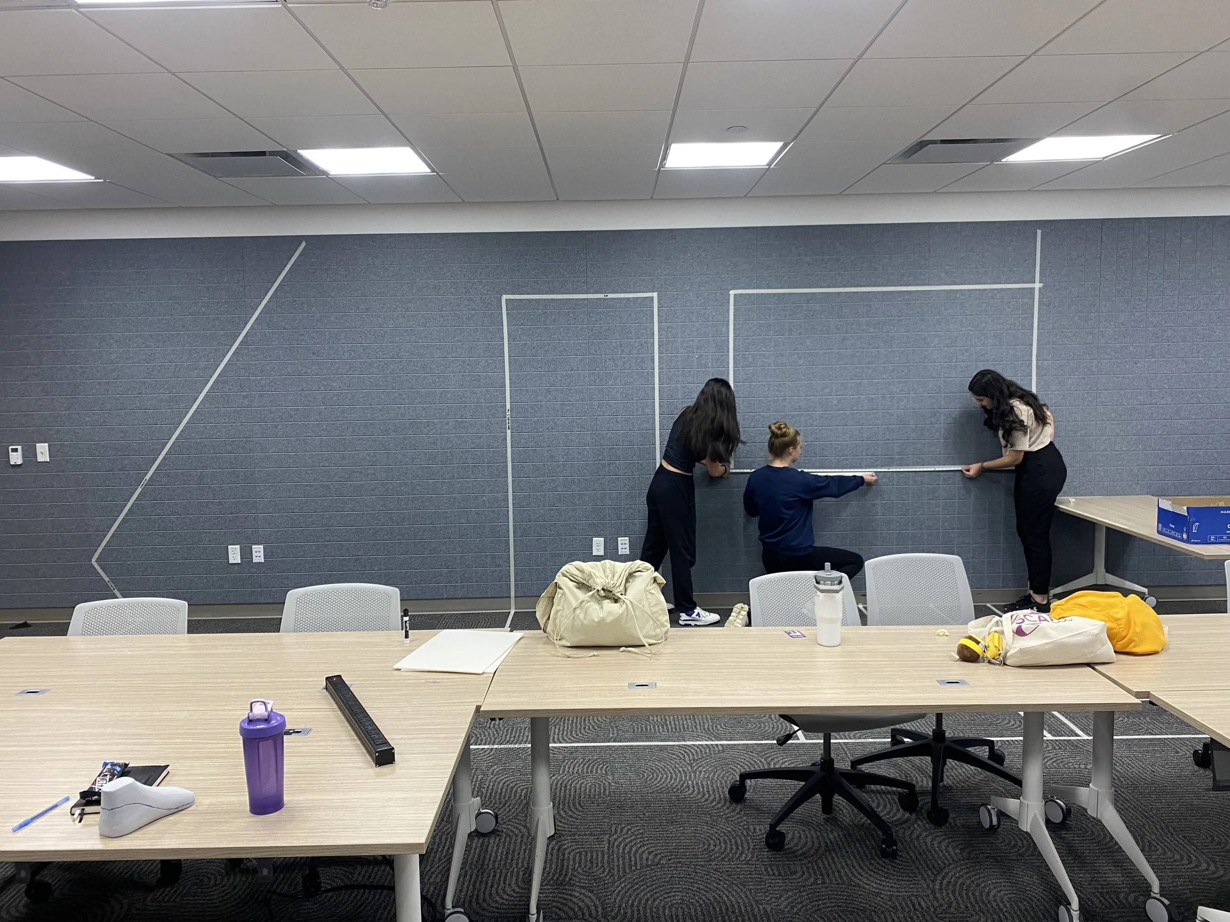 Without access to full user testing, we used creative workarounds such as taping scaled layouts on walls and placing chairs to simulate real interactions and gather meaningful feedback.