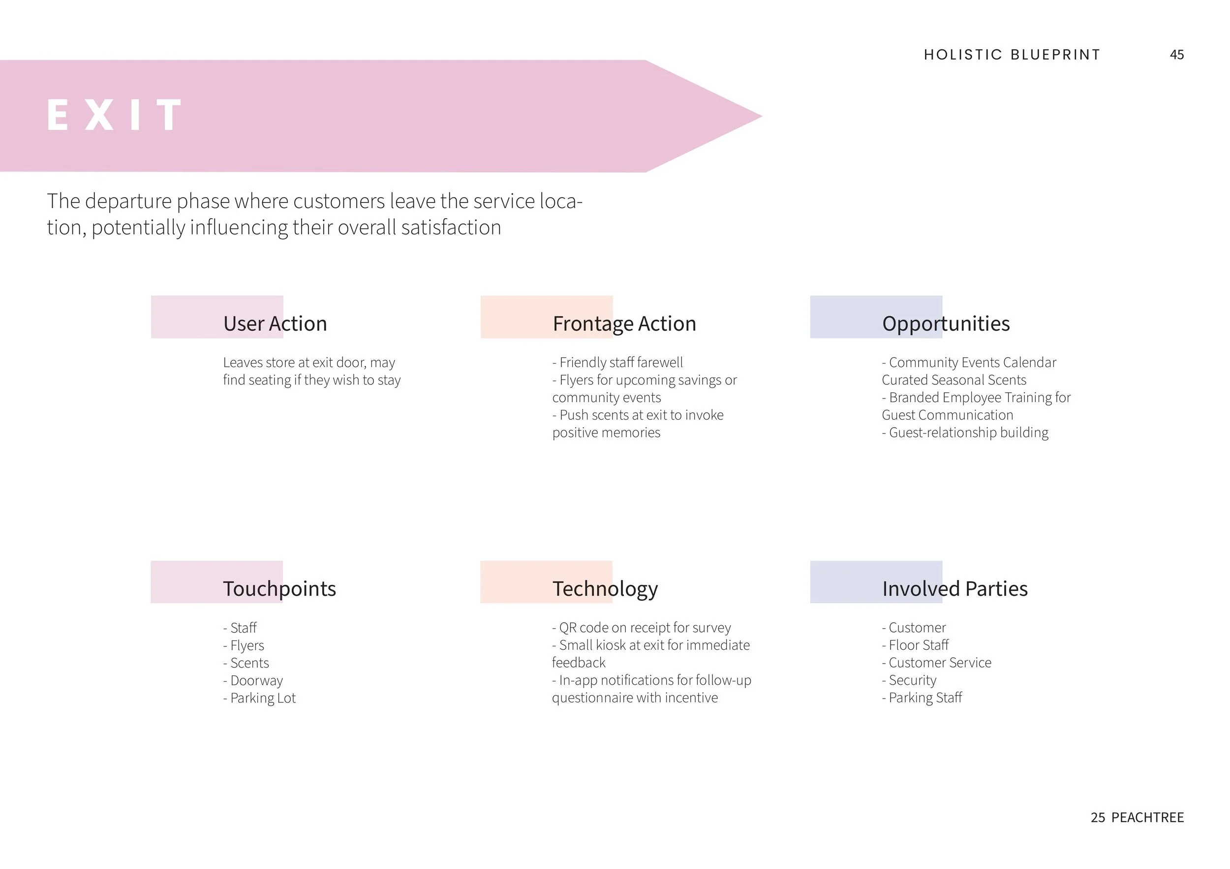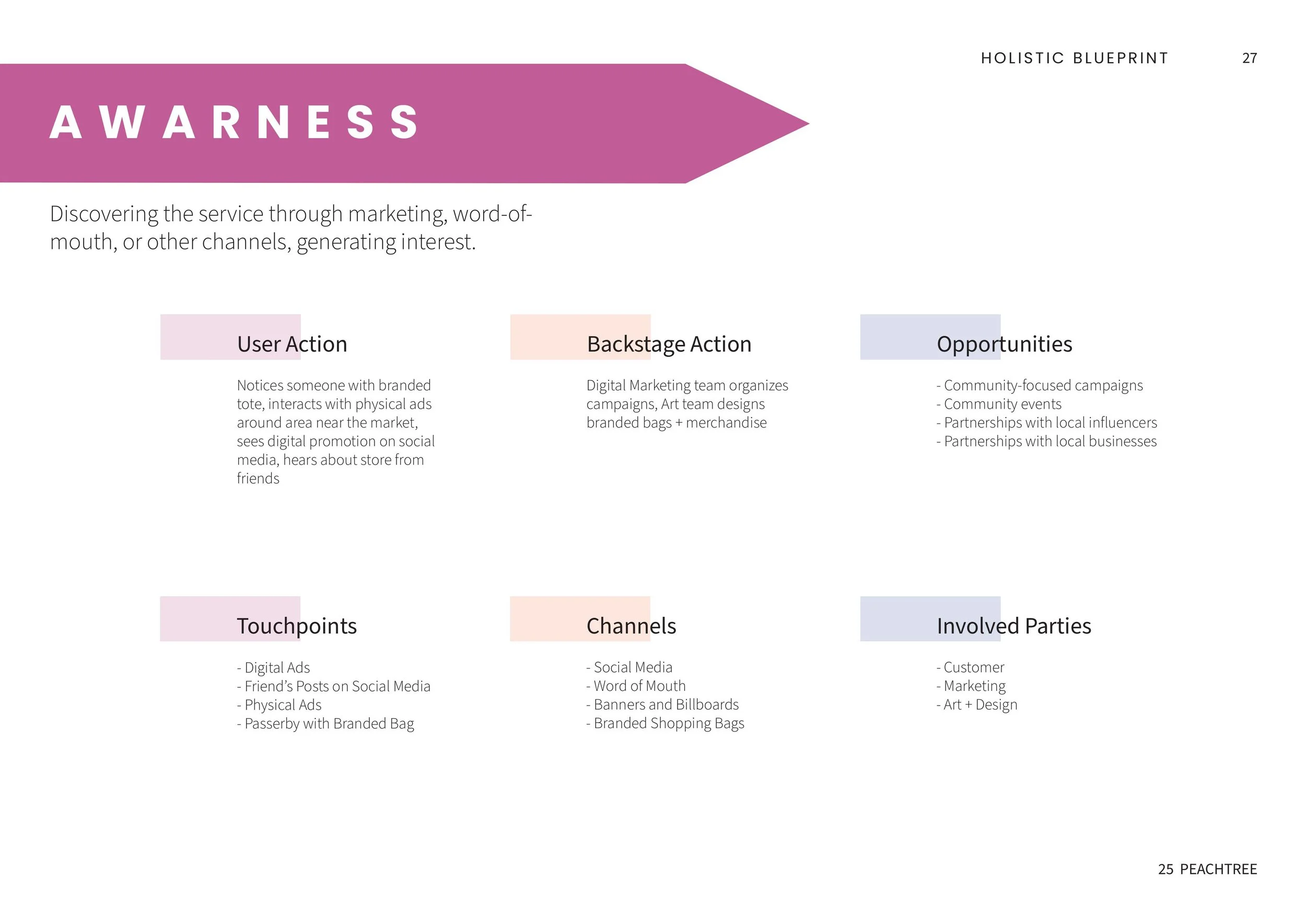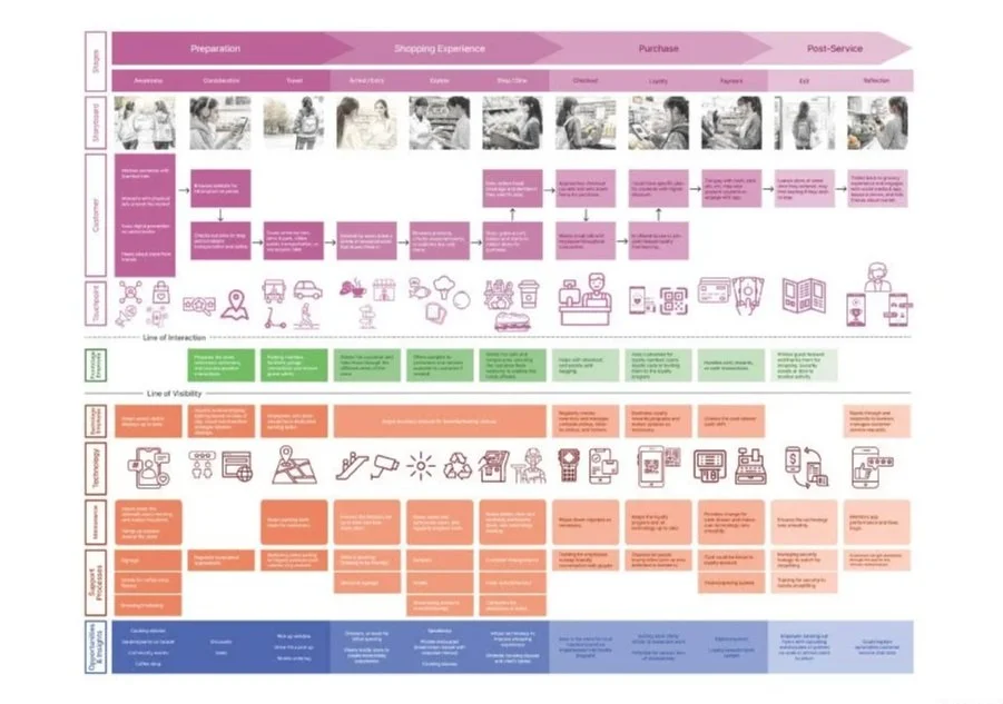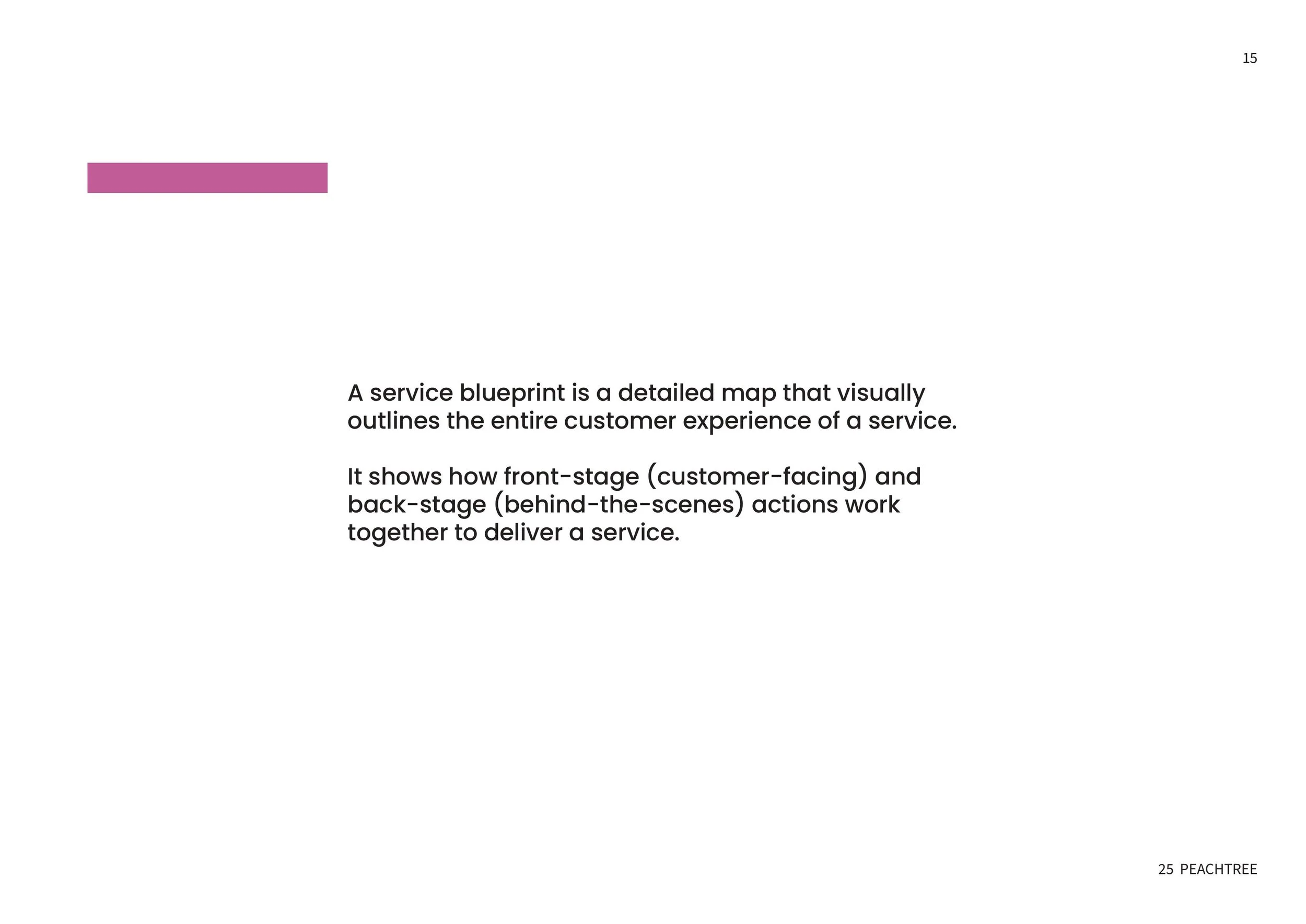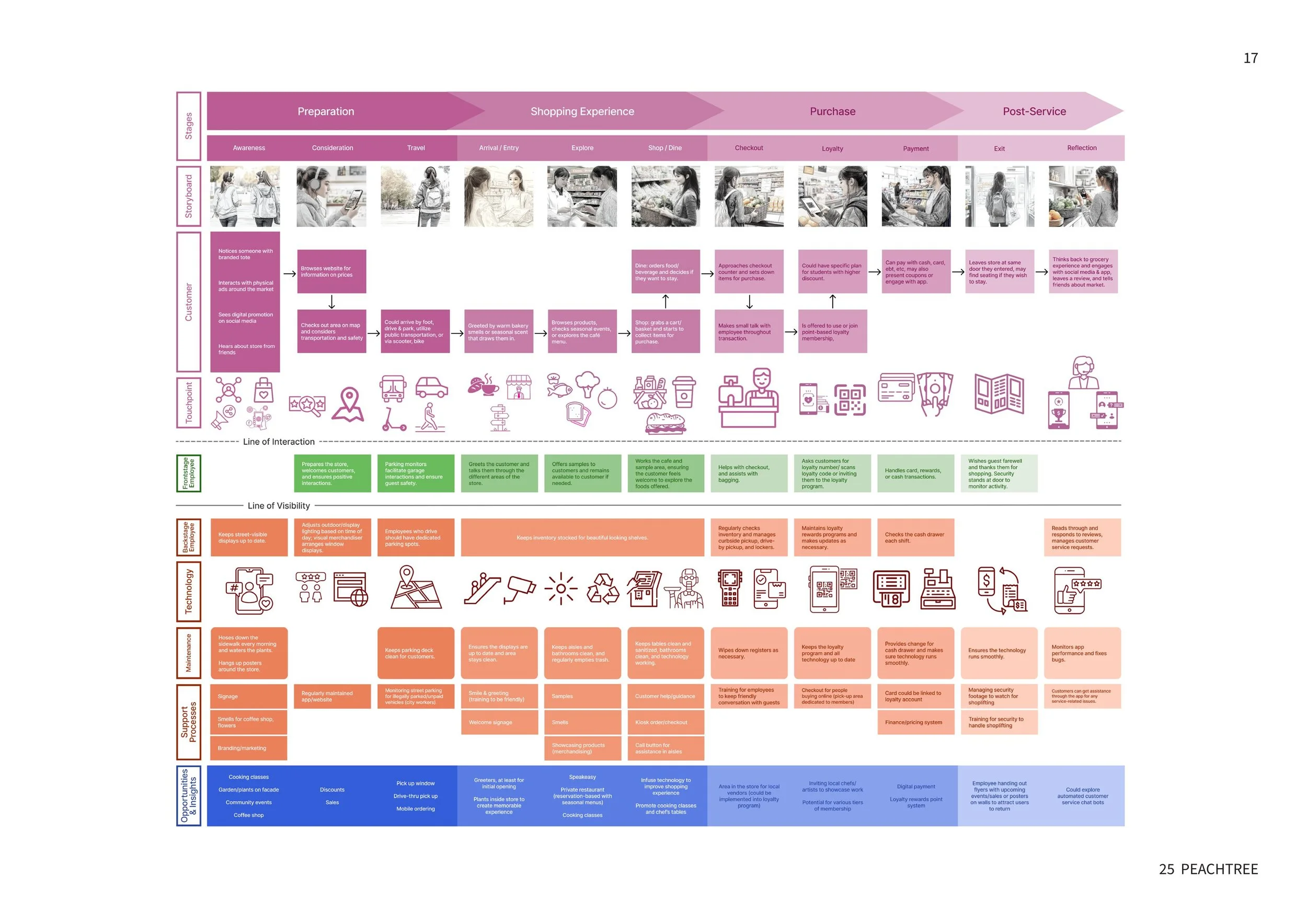 The service blueprint outlined the customer experience taking both front-stage and back-stage interactions into account