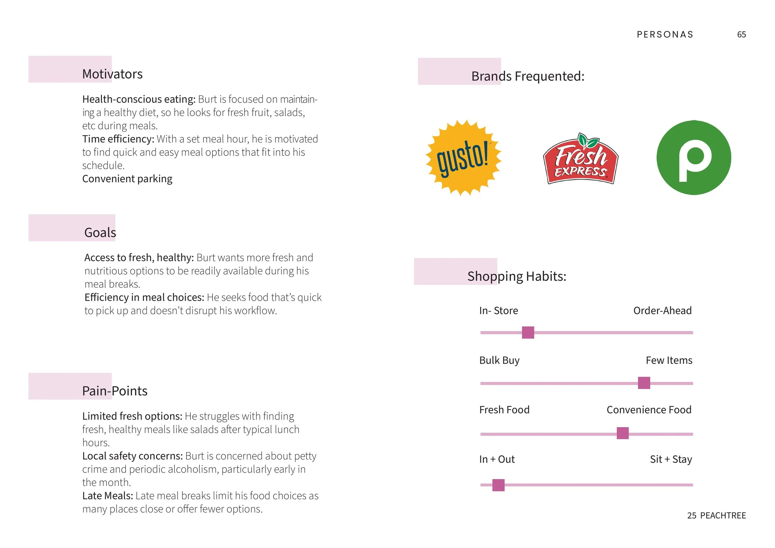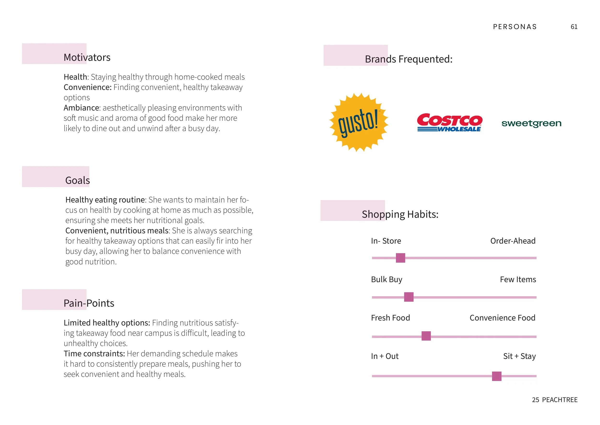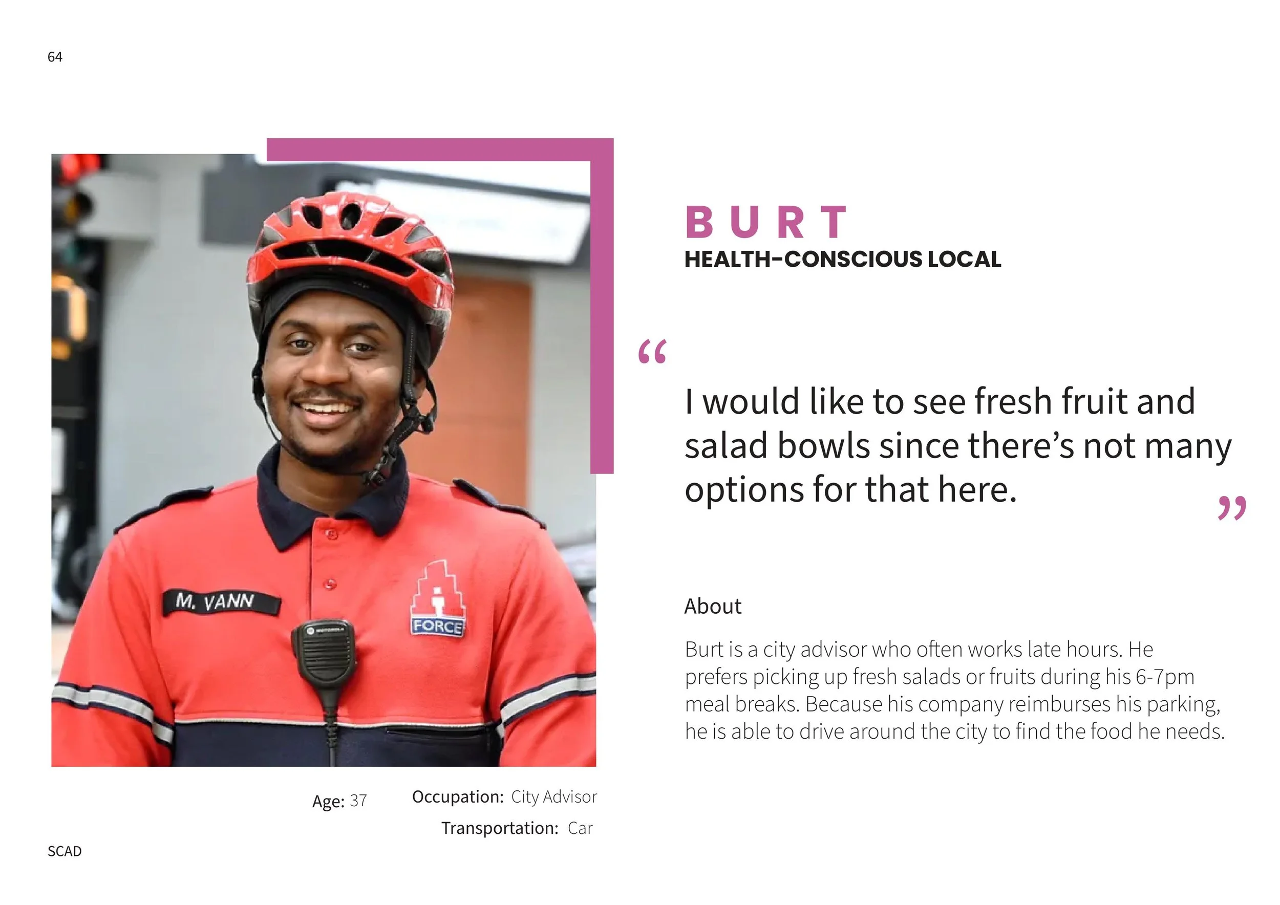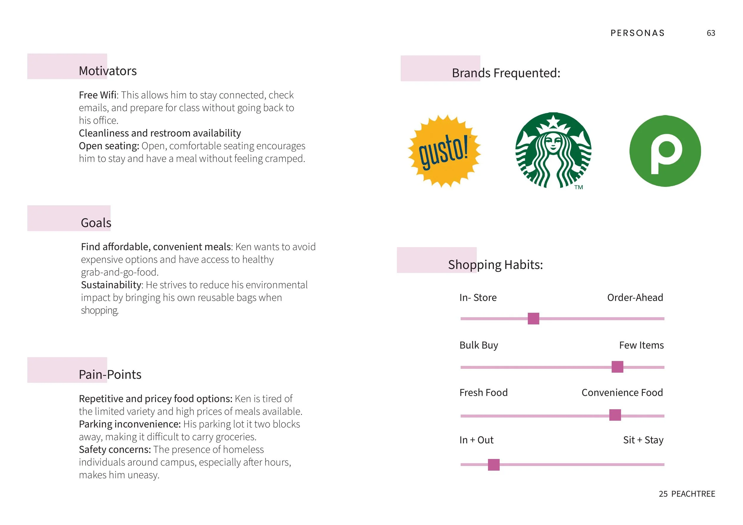 For this project, we took the street interviews from our primary research and developed four distinct personas. These personas ranged from a health-conscious grad student to an on-the-go professor.