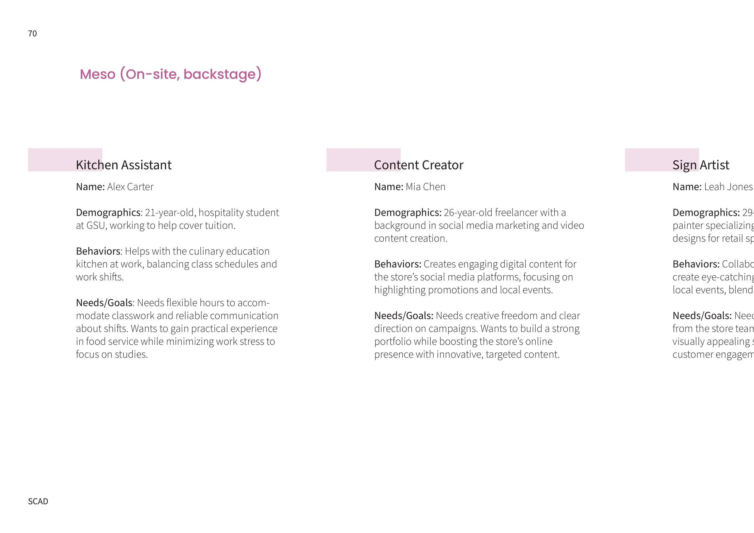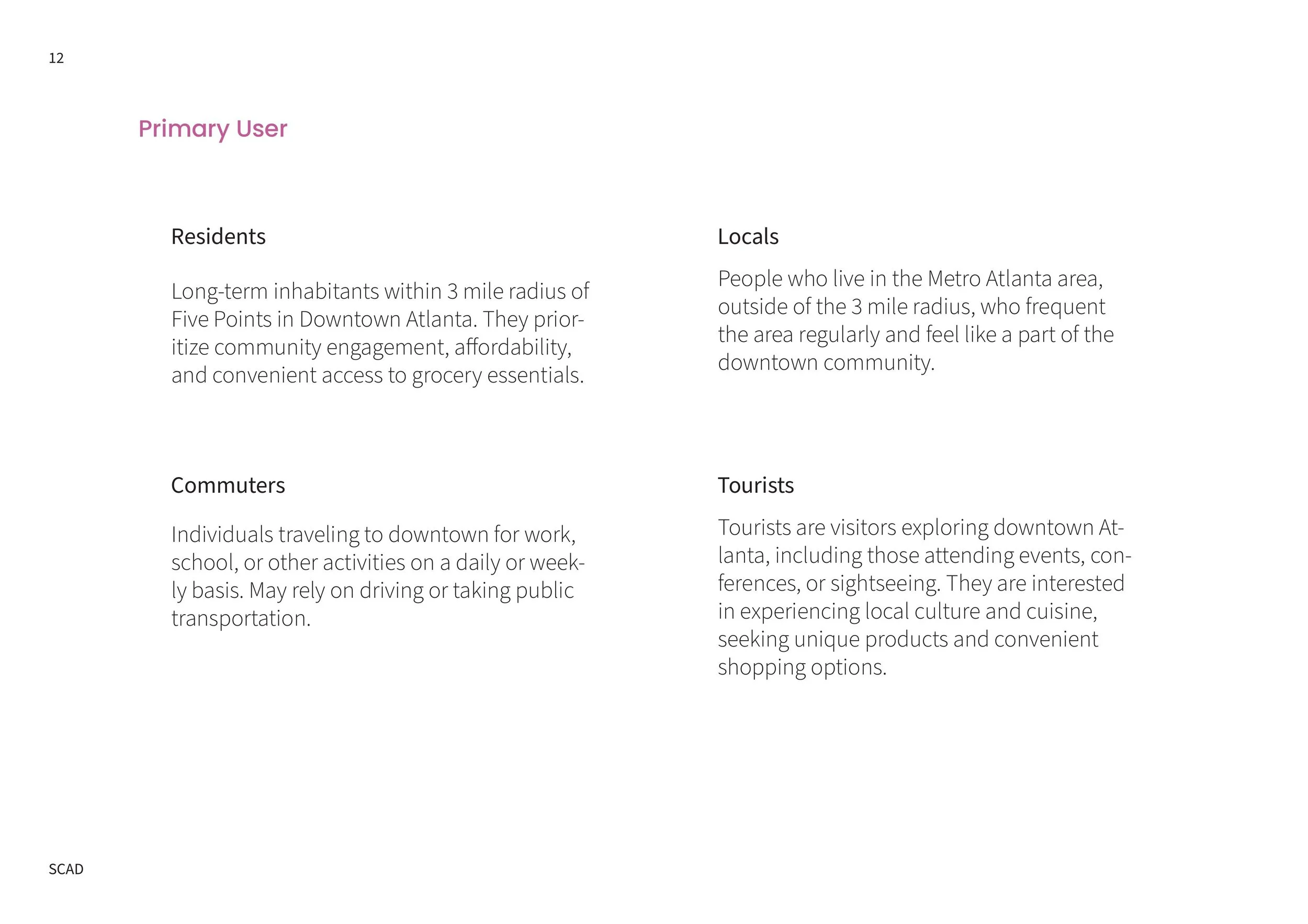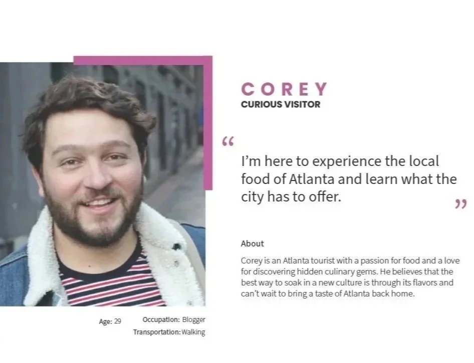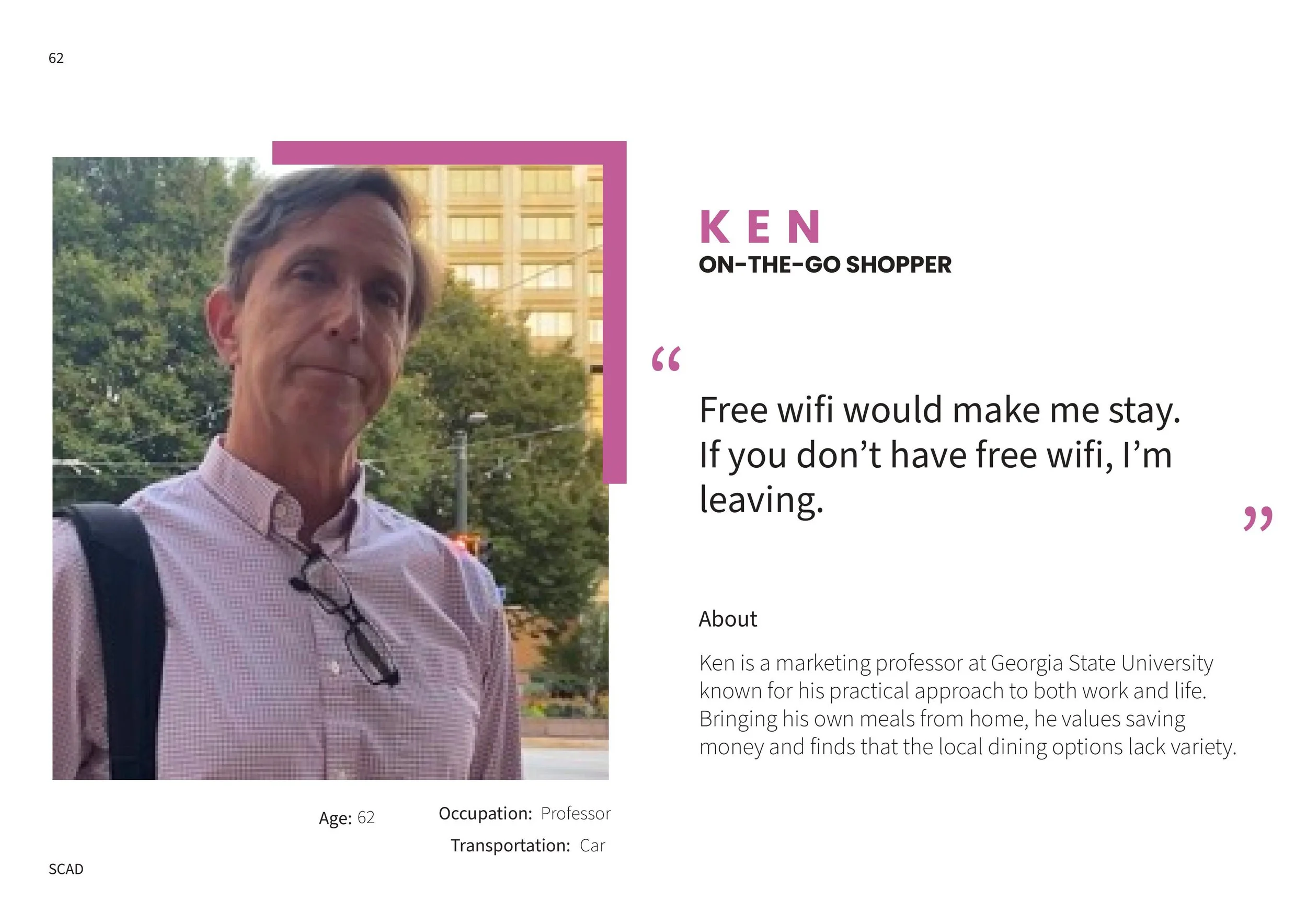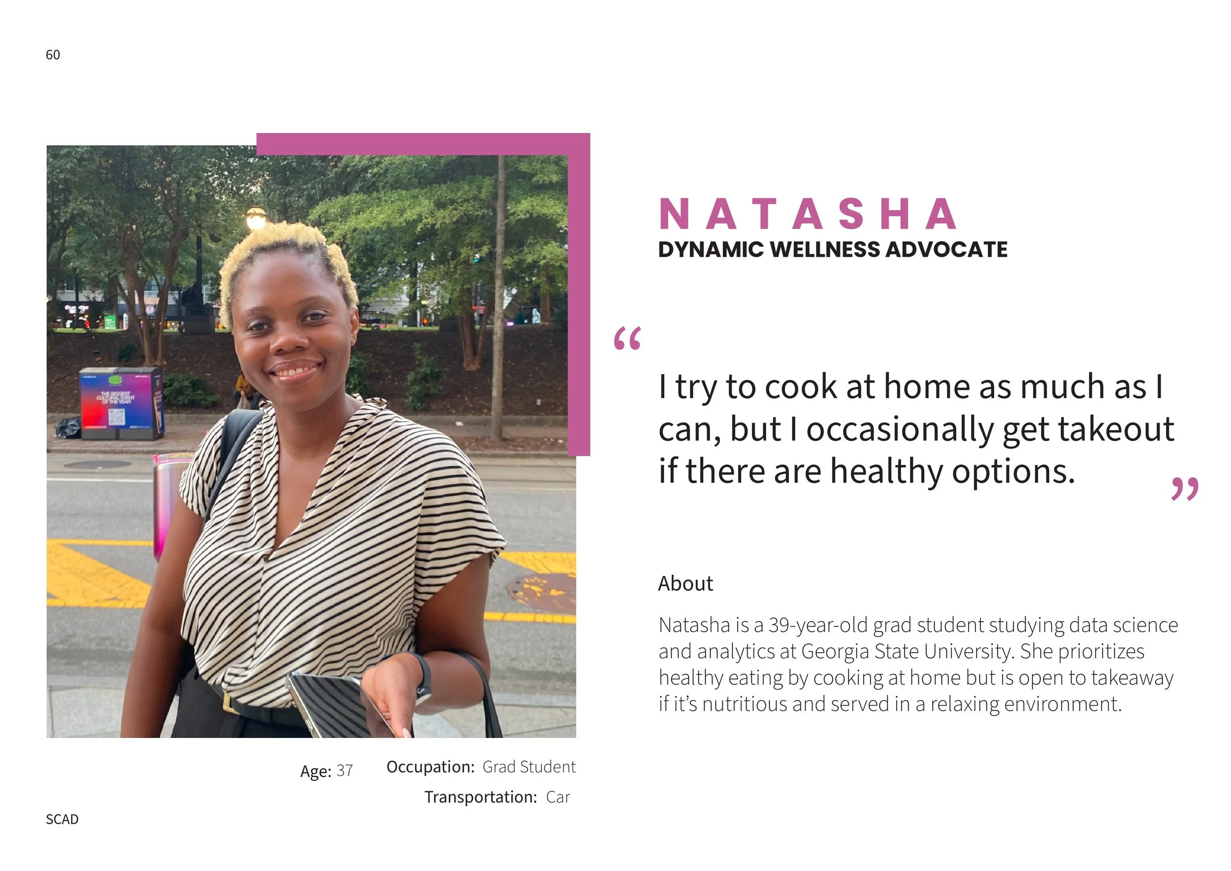 For this project, we took the street interviews from our primary research and developed four distinct personas. These personas ranged from a health-conscious grad student to an on-the-go professor.