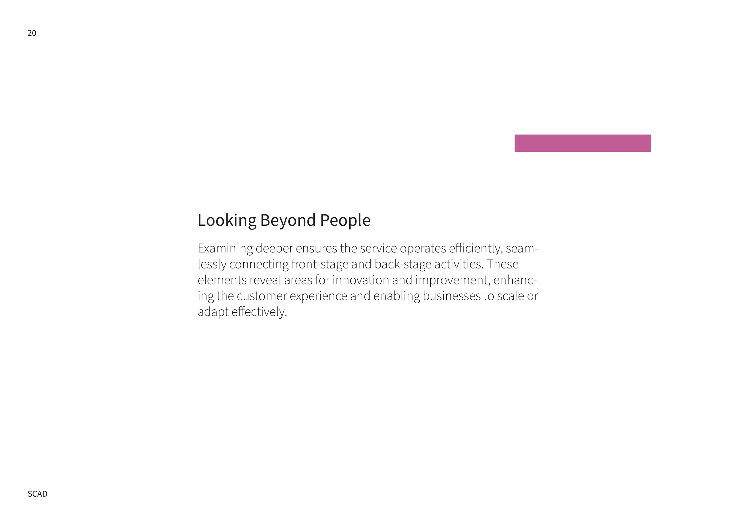 For this project, we followed the customer, front-stage (directly interacting with the customer), back-stage (behind-the-scenes support that is occasionally visible), and maintenance crews as well as every piece of technology in search of opportunities to improve service.