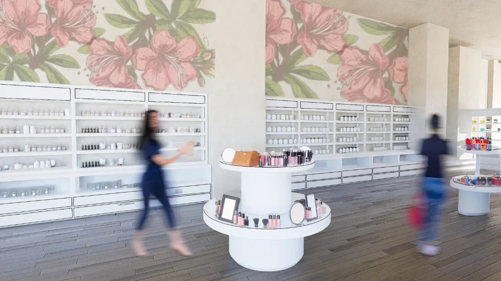 The historic Olympia Building features narrow escalators connecting each floor. To ensure effortless movement throughout Azalea’s, the cart was designed with a compact frame that fits standard escalator systems. Its size also allows for fluid navigation through tight aisles, accommodating the building’s condensed layout.