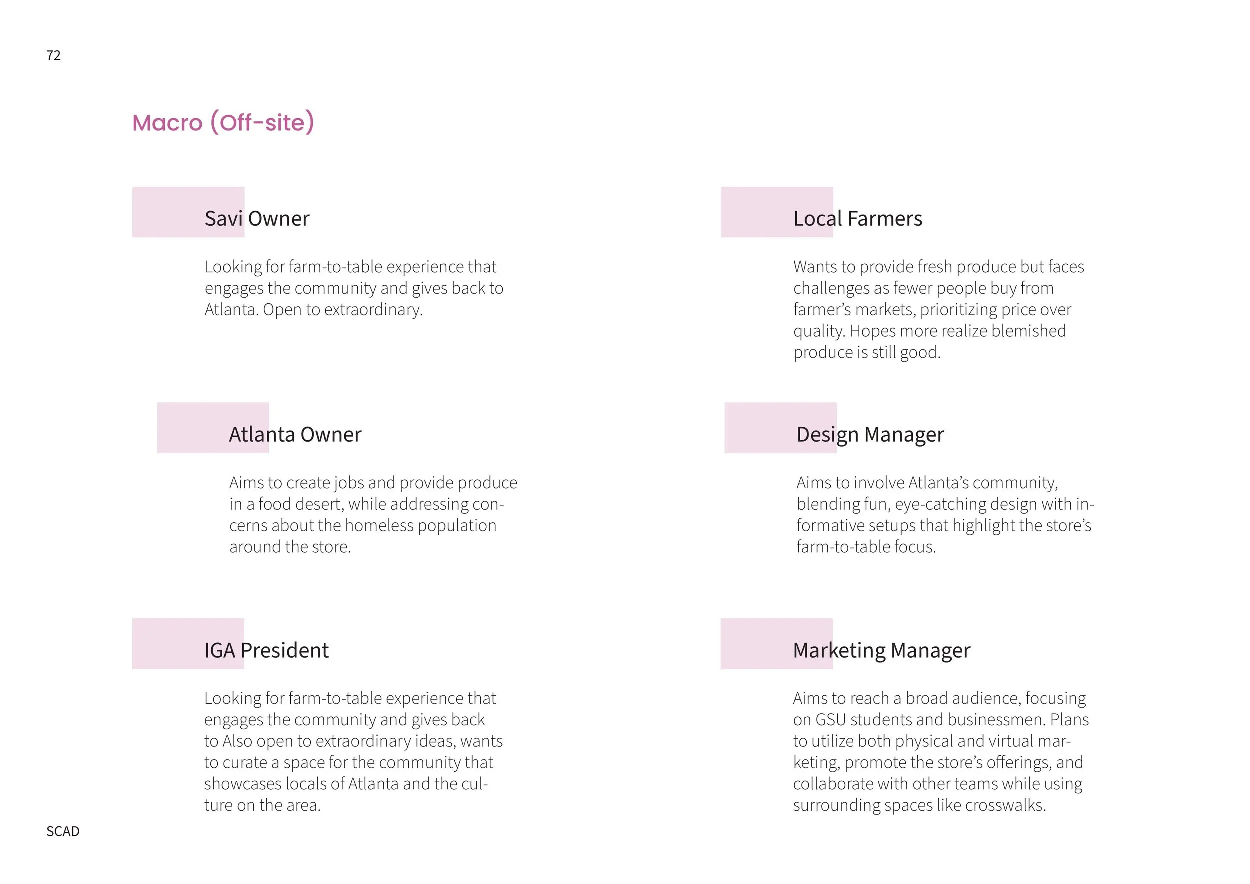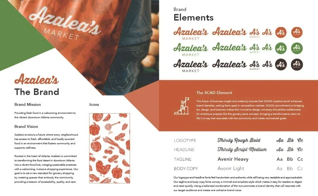 For this SCADpro project, a team of 60 user experience, interior, and branding designers united in collaboration with the City of Atlanta, Savi Provisions, and the Independent Grocers Alliance (IGA) to restore the historic Olympia Building. Together, we developed floor-plans, branding, and phygital touch points to bring Azalea’s to life.