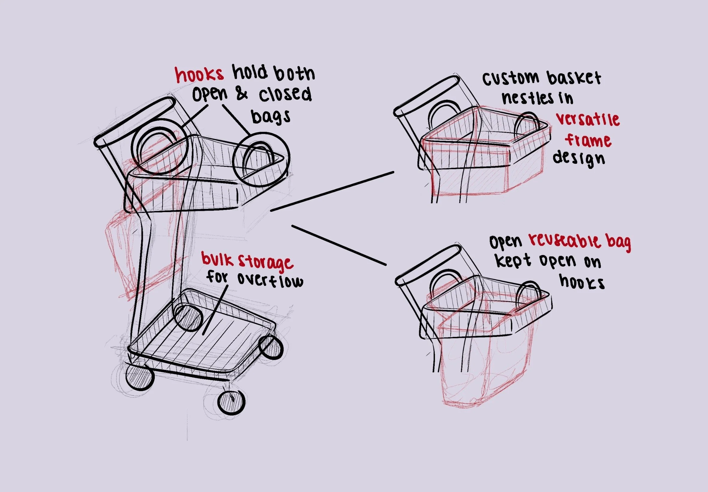 a concept cart for Azalea’s that addresses mobility and adapts to the needs of urban shoppers.